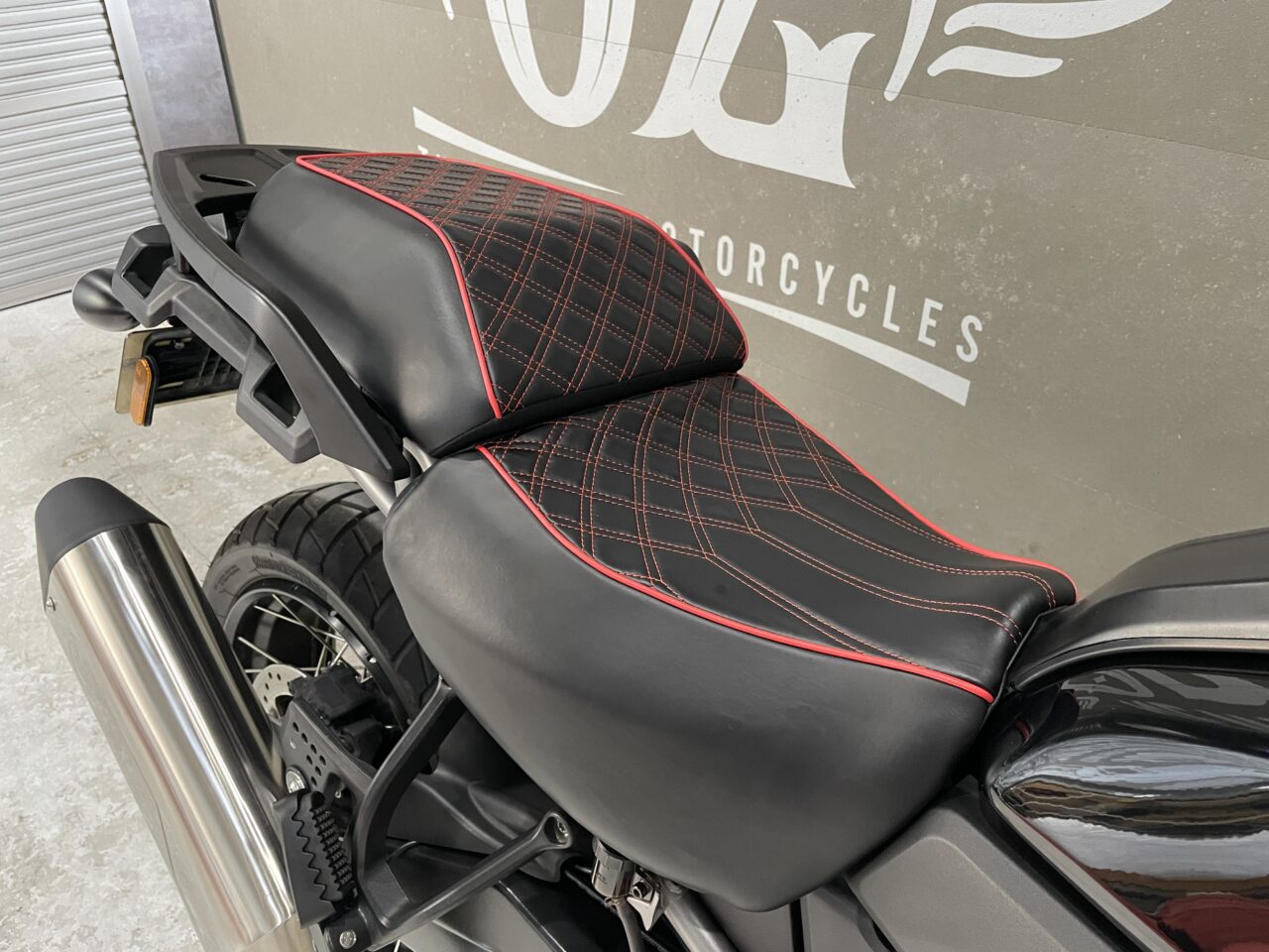 シートカバーを取ると、弊社オリジナルの刺繍・張替えをしており、防水性の高い生地を使用し、悪天候でも不便なく走行可能になっています(^_-)-☆