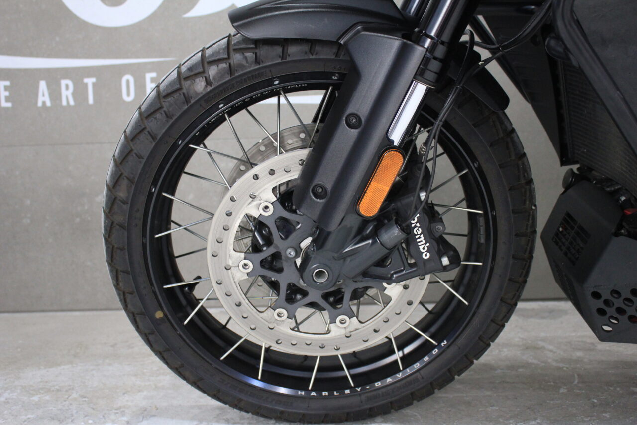 アルミキャストホイール:オンロードおよびオフロードの路面状況に容易に対応できるように専用設計しており、リムには、HARLEY-DAVIASONと刻印が入っていて、ワイルド感を演出しています!