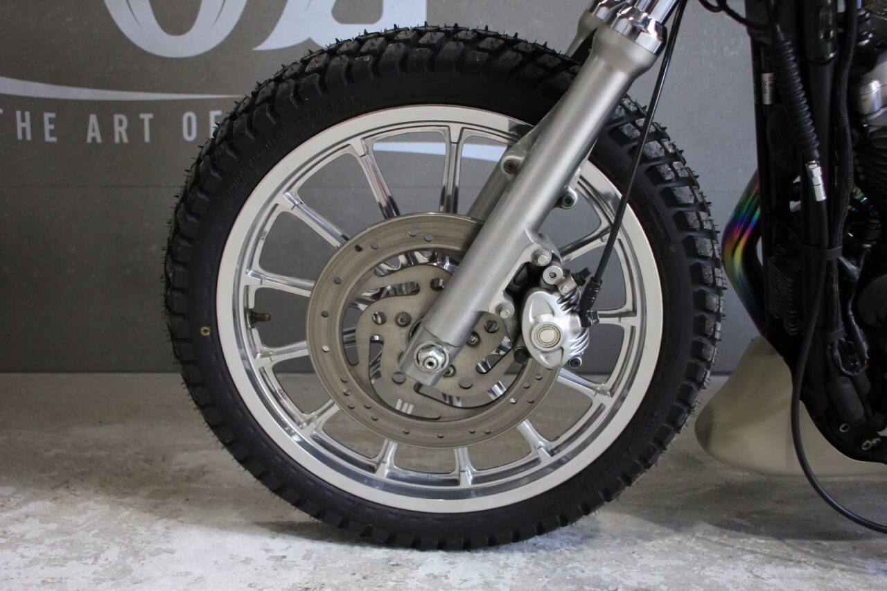 純正ホール(前後)をポリッシュ加工・ブロックタイヤ等装着する事によって、ダートトラック風に仕上げています!