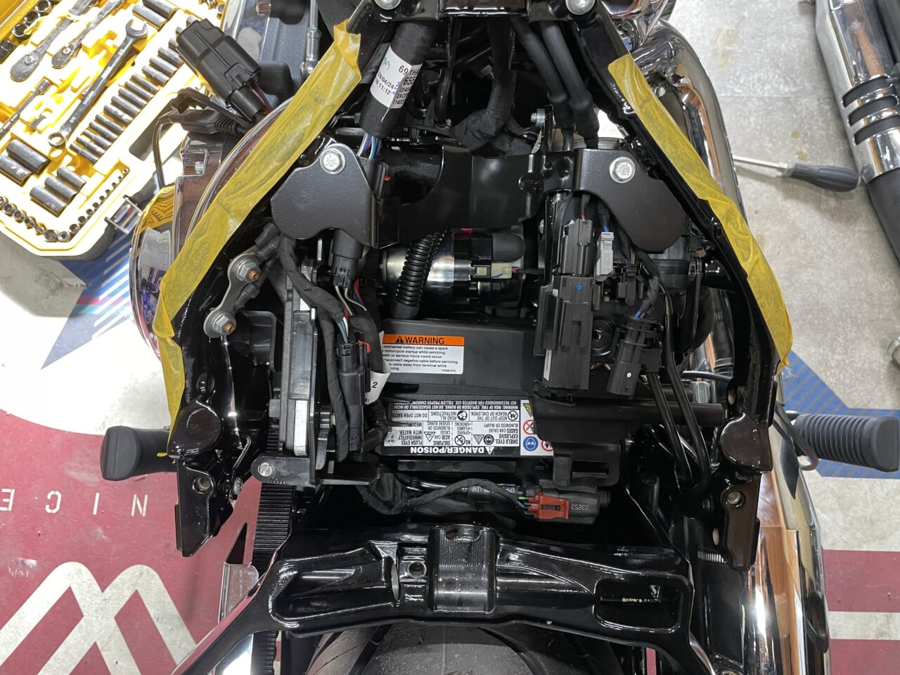 先にリアフェンダーを外します!! 仕組みは簡単で左右ボルト四本抜き取る&リア配線外すだけ!