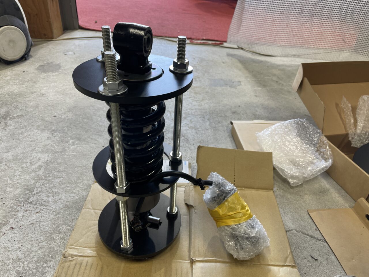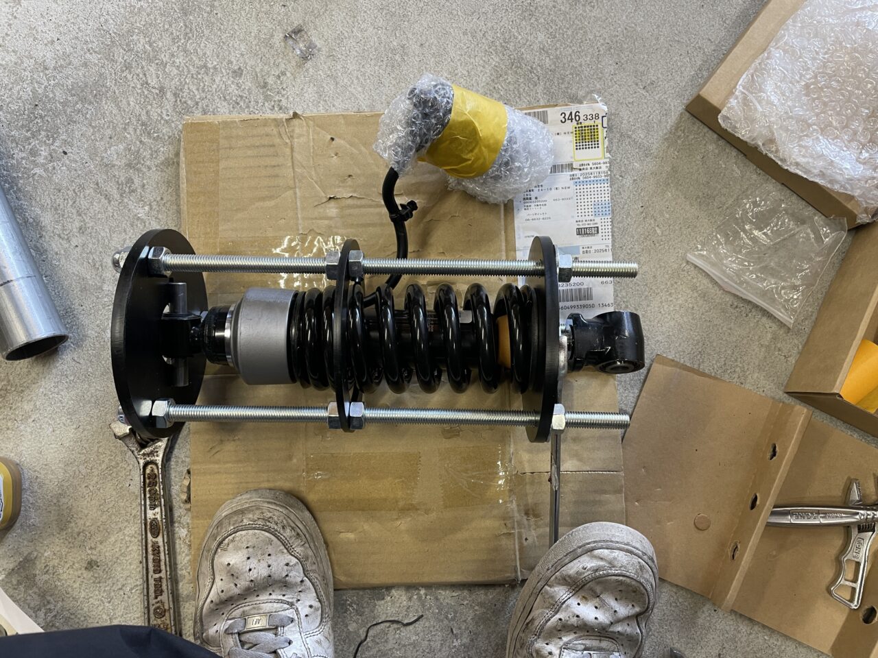 さぁここからが本番!!骨髄延長でもするのかな?みたいなサスコン【専用スプリングコンプレッサー】を使用して縮めていきます!