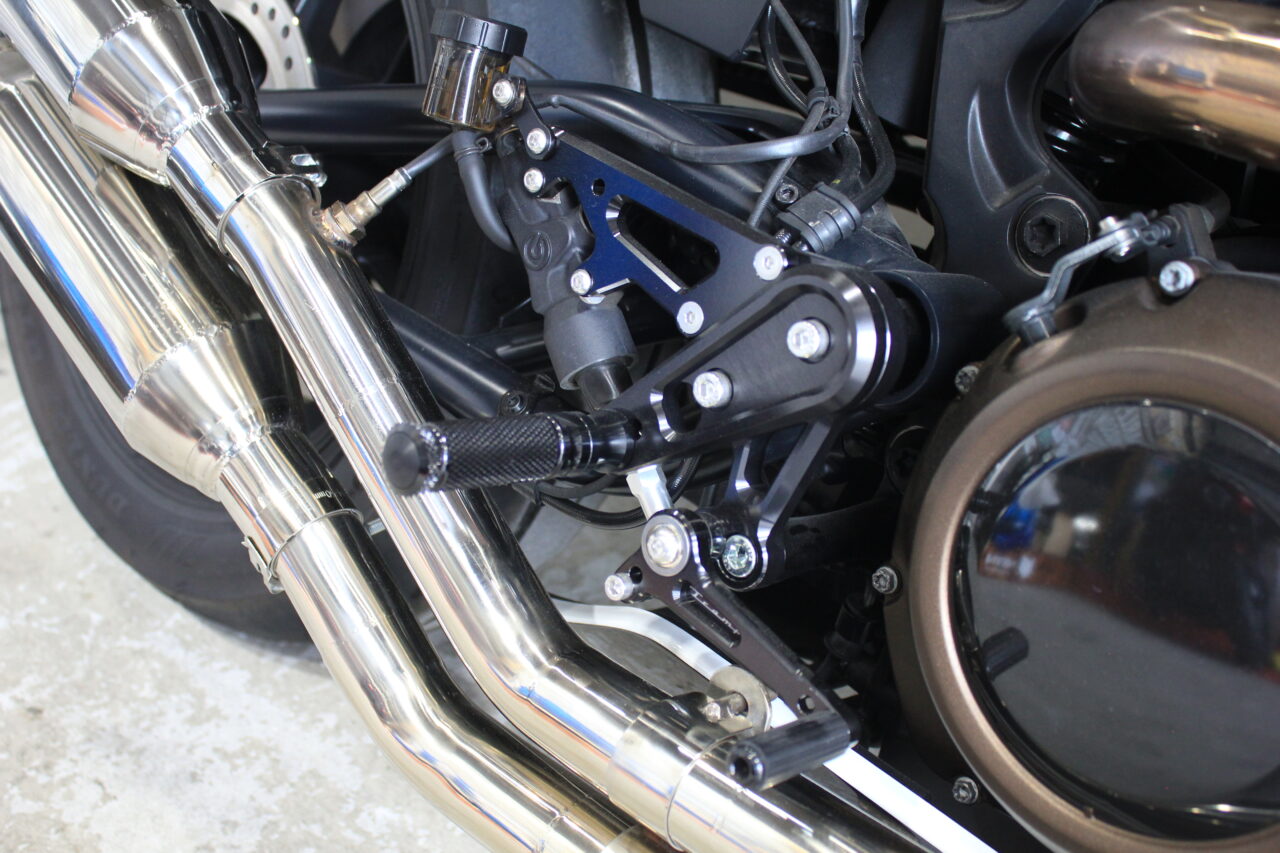 トランプ製のバックステップを装着!ノーマル時より格段と操縦性能や乗車姿勢も楽になります!カフェレーサーに必要不可欠のパーツです!